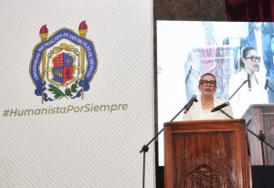 Flanqueada por las y los directores de escuelas y facultades de la institución, la rectora manifestó la satisfacción de entregar este reconocimiento a alumnas y alumnos, que dijo, invierten su tiempo en construir una excelente trayectoria académica que seguramente será una destacada trayectoria profesional. “Quiero felicitarlas y felicitarlos y también a su familia que los ha acompañado en cada paso que ustedes han dado”.