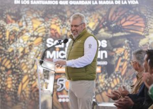 El mandatario destacó la importancia de preservar los bosques de oyamel que conforman la Biosfera de la Mariposa Monarca y los esfuerzos que realizan los gobiernos federal y estatal para mantener viva una de las migraciones más importantes e impresionantes del mundo y que cada temporada atrae a miles de turistas y visitantes.