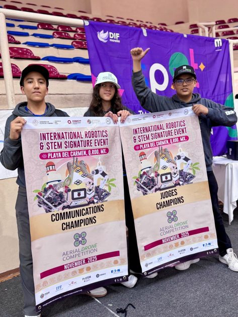 Los tres participantes, de 12, 13 y 14 años, compitieron en Playa del Carmen dentro de la categoría de drones, donde se reunieron equipos de distintos estados del país en el marco de un evento internacional que también contó con delegaciones de diversos países como Estados Unidos, China, Taiwán, Paraguay e India.