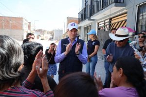Al arribar, el alcalde fue recibido por vecinos y vecinas de la colonia 3 de agosto, a quienes expresó: “Nada más en este año estamos haciendo 10 calles en la zona, más las que ya hemos hecho y las que vamos a seguir haciendo”.