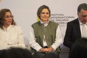 Morelia, Michoacán; 04 de noviembre de 2025.- Para el gobierno del presidente municipal, Alfonso Martínez Alcázar, es fundamental el apoyo y promoción de los festivales que engalanan a nuestra ciudad, expresó la secretaria de Cultura, Fátima Chávez Alcaraz, en el anuncio del 59 Festival Internacional de Órgano de Morelia “Alfonso Vega Núñez” (FIOM).