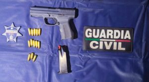 El hecho ocurrió en las inmediaciones de la colonia Ejército Mexicano de este municipio, donde los agentes de la Guardia Civil aseguraron a las personas en mención y les decomisaron un arma de fuego calibre .9 milímetros, 13 cartuchos útiles, un cargador y un automotor marca Italika.