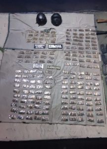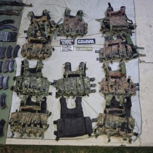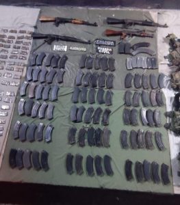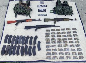 Posteriormente, en la misma comunidad, fueron asegurados dos hombres, uno de ellos adolescente, en portación de tres armas de fuego calibre 7.62X39 milímetros, 540 municiones, 19 cargadores, equipo táctico y un vehículo marca Jeep.