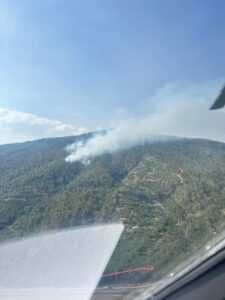 Salvador Escalante, Michoacán, 16 de abril de 2026.- El Gobierno de Michoacán atiende el incendio forestal registrado en la localidad de Jujucato, en el municipio de Salvador Escalante, mediante el despliegue de apoyo aéreo con un helicóptero equipado con helibalde, perteneciente a la Secretaría de Seguridad Pública.