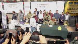 Morelia, Michoacán 29 de noviembre 2025.- La secretaria de Gobernación, Rosa Icela Rodríguez, informó que en Michoacán avanza con resultados positivos la estrategia “Sí al Desarme, Sí a la Paz”, una acción institucional destinada a invitar a la población a entregar de manera anónima y voluntaria sus armas de fuego a cambio de dinero en efectivo.