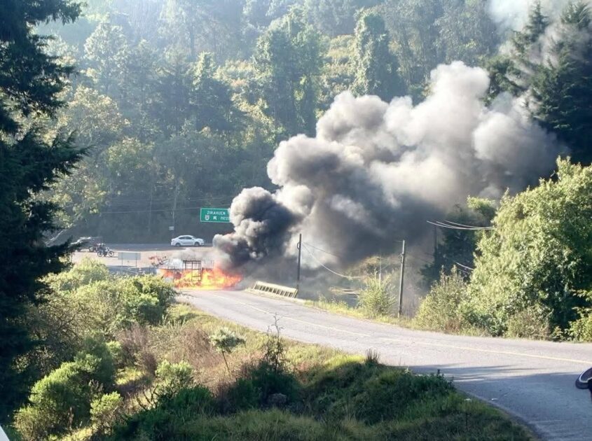 Morelia, Mich., 22 de Febrero de 2026.- Integrantes de la delincuencia organizada desataron una serie de bloqueos carreteros y quema de vehículos en distintos puntos de Michoacán, como reacción a un operativo implementado por fuerzas federales en el estado de Jalisco.
