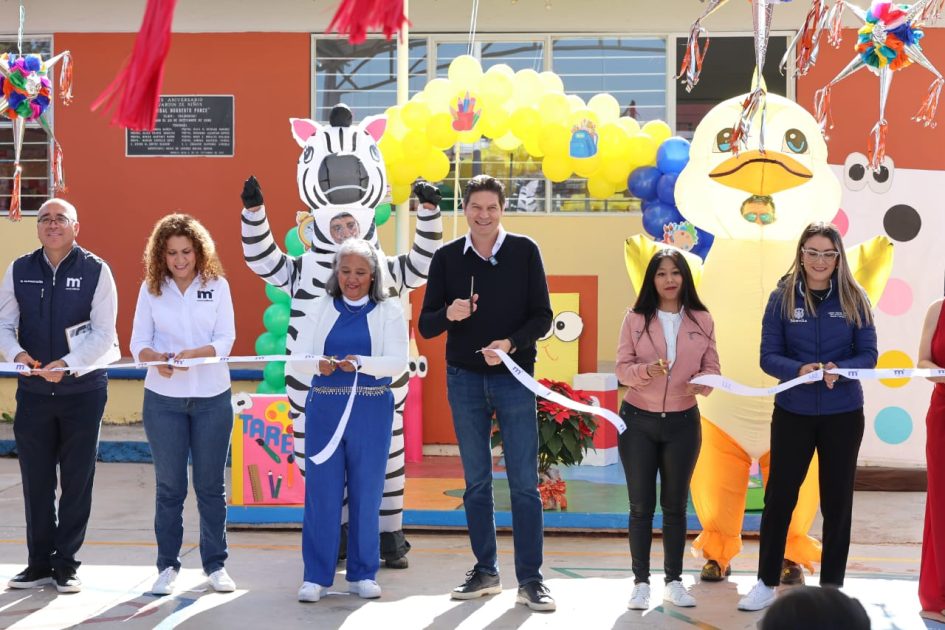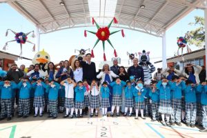 Morelia, Michoacán; 03 de diciembre de 2025.- Maestras, padres de familia y estudiantes del Jardín de Niños “Aníbal Norberto Ponce” agradecieron al presidente municipal de Morelia, Alfonso Martínez Alcázar, por la nueva techumbre que inauguró hoy en su escuela, dándoles condiciones dignas para el estudio y el recreo.