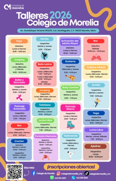 Morelia, Michoacán; 14 de enero de 2026.-El director del Colegio de Morelia, Iván Fernando Barrales Alcántara, extendió la invitación a toda la ciudadanía para conocer y sumarse a la amplia oferta de actividades que combinan salud, arte, cultura y desarrollo personal.