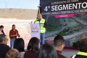 El mandatario detalló que el cuarto segmento de 17.9 kilómetros se recorrerá en 5.2 minutos para conectar de manera rápida y segura de El Cuitzillo a Ciudad Salud, o conducir al Aeropuerto Internacional de Morelia, lo que contribuirá a ordenar el desarrollo urbano de la zona conurbada de la capital michoacana.