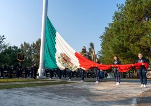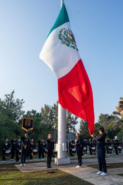 Flanqueada por integrantes del Gabinete Legal y Ampliado, la rectora izó el Lábaro Patrio, y con orgullo y respeto las y los nicolaitas entonaron el Himno Nacional para que posteriormente la multigalardonada Banda de Guerra de la institución diera paso a la marcha “Crisol de Pensadoras y Pensadores”.