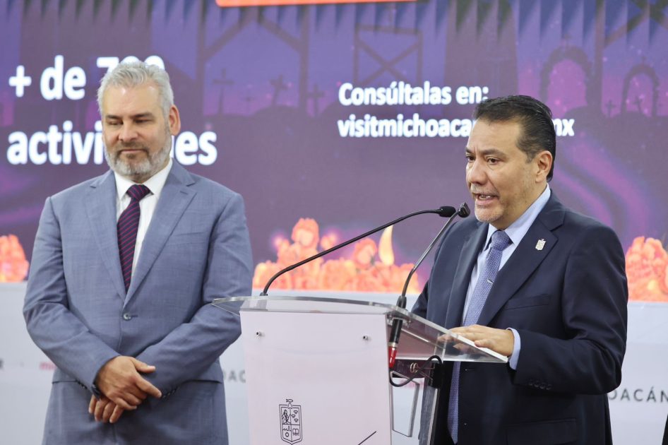 Morelia, Michoacán, 27 de octubre de 2025.- Michoacán desarrolla más de 700 actividades para celebrar la Semana de Noche de Muertos, donde destacan altares monumentales en la zona lacustre, recorridos en campos de flores y panteones, talleres y visitas a los manantiales de Urandén, informó el gobernador Alfredo Ramírez Bedolla.