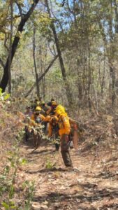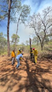 Asimismo, se contó con el apoyo de un helibalde perteneciente al Gobierno del Estado, que realizó nueve descargas el día de ayer en la zona afectada por el fuego.