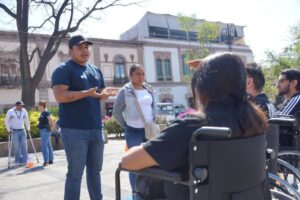 Morelia, Michoacán; 02 de marzo de 2026.- En el marco del Día Internacional de la Silla de Ruedas, el DIF Morelia que encabeza la presidenta honoraria, Paola Delgadillo Hernández, llevó a cabo una actividad vivencial en la Plaza Melchor Ocampo, donde decenas de personas participaron en un circuito diseñado para sensibilizar sobre los retos cotidianos que enfrentan quienes utilizan silla de ruedas.
