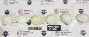 Al inspeccionar la camioneta fueron localizados seis envoltorios de sustancia granulosa con las características propias de la metanfetamina, con un peso aproximado de cinco kilogramos, mismos que fueron puestos a disposición de la autoridad competente junto con los ahora indiciados.