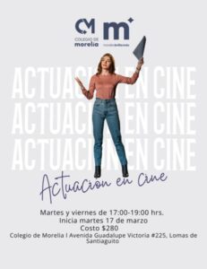 Tanto los talleres como este curso de Actuación en Cine, están dirigidos a personas desde los 6 años. Las inscripciones están abiertas y para mayores informes los interesados se pueden comunicar al 443 298 25 60, y registrarse en la página oficial del Colegio de Morelia, https://colegiodemorelia.gob.mx/ en el apartado de Talleres.