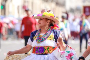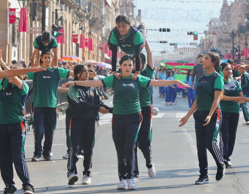Desde el balcón de Palacio de Gobierno, el mandatario observó el paso de 2 mil 580 participantes por la avenida Madero, entre estudiantes de educación media superior y superior, trabajadores estatales y municipales, integrantes de asociaciones deportivas, militares y guardias nacionales, entre otros participantes.