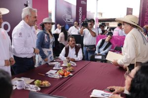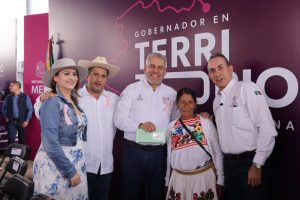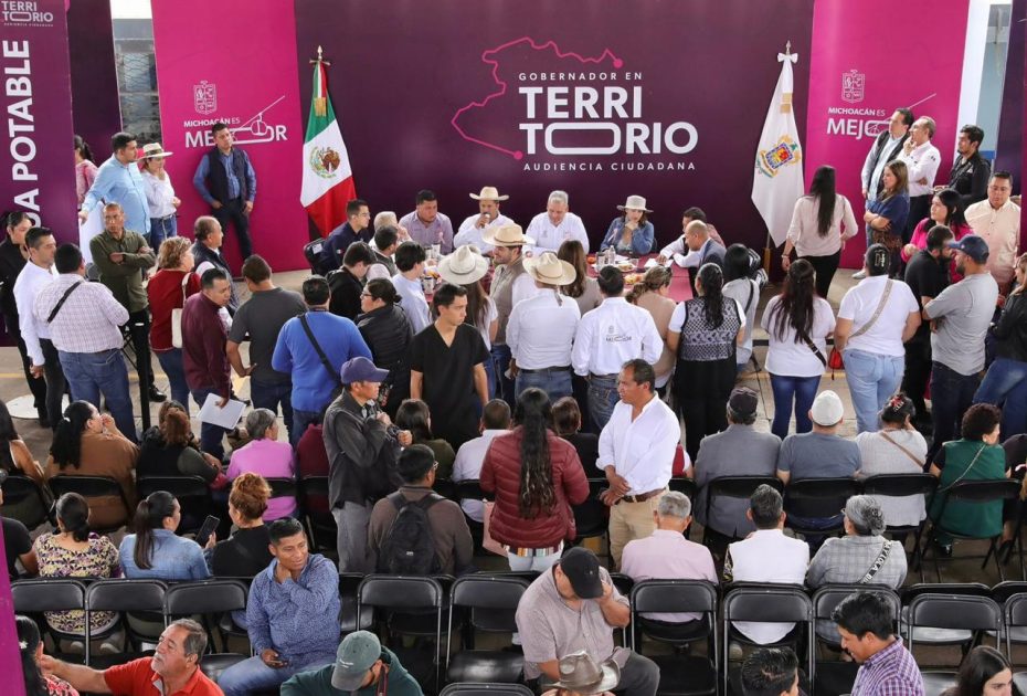 Acompañado por su gabinete legal y ampliado; del alcalde de Uruapan, Carlos Manzo; la diputada federal, Guadalupe Mendoza Arias; delegados federales; así como otras autoridades estatales y municipales, el mandatario recibió peticiones en materia de medio ambiente, agua, campo y movilidad, principalmente.