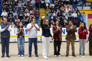 Felicitó a la rectora Yarabí Ávila por el trabajo realizado en la UMSNH, “soy egresada de la Facultad de Derecho y no había todo lo que tienen ustedes jóvenes, este auditorio, la próxima alberca, un Estadio bellísimo y todo lo que se ha hecho”.