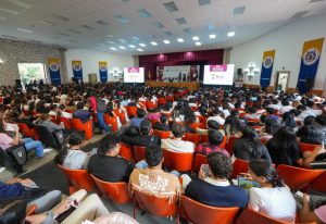 Morelia, Michoacán, a 24 de noviembre de 2025.- Ante una multitud de alumnas y alumnos de la Universidad Michoacana de San Nicolás de Hidalgo (UMSNH) se anunció la puesta en marcha de la Beca Gertrudis Bocanegra impulsada por el gobierno encabezado por la presidenta Claudia Sheinbaum Pardo, como parte del Plan Michoacán por la Paz y la Justicia, actividad a la que asistió la rectora Yarabí Ávila González, quien manifestó que la casa de estudios está lista para seguir colaborando por el Estado.