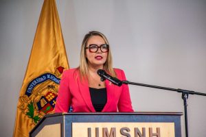 Externó la nostalgia que le produce caminar por los pasillos de esta dependencia y recordar vivencias, a sus maestras y maestros, pero sobre todo, la ilusión de construir un futuro digno, de servir a la sociedad con los conocimientos aprendidos. “Hoy no sólo celebro el aniversario de la Facultad de Contaduría y Ciencias Administrativas, celebro también el poder transformador de la educación, ese que cambia destinos, que da sentido a las vocaciones y como en mi caso puede transformar la vida de una joven estudiante en rectora de la Universidad Michoacana de San Nicolás de Hidalgo”.