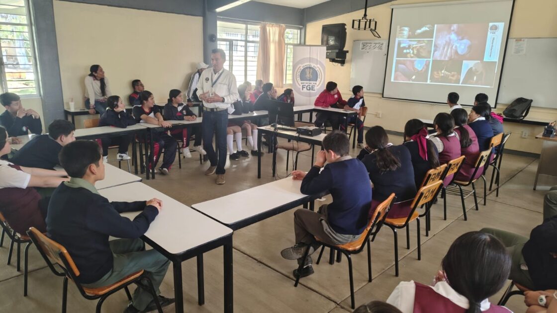 Morelia, Michoacán, a 27 de marzo de 2026. – Con el objetivo de prevenir conductas de riesgo y fortalecer la toma de decisiones informadas entre las juventudes, la Fiscalía General del Estado de Michoacán (FGE), a través del Instituto de Capacitación y Servicio Profesional de Carrera (INCASEP), impartió la capacitación “El consumo de drogas por adolescentes: efectos presentes y futuros” a la comunidad estudiantil de la Escuela Secundaria Federal No. 08 “Lic. José Trinidad Guido”.