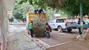 Personal de la Secretaría de Servicios Públicos Municipales, cuyo titular es el secretario Netzahualcóyotl Vázquez Vargas, desde temprana hora comenzaron la poda de árboles cuyas hojas y ramas crecieron considerablemente durante la temporada de lluvias.