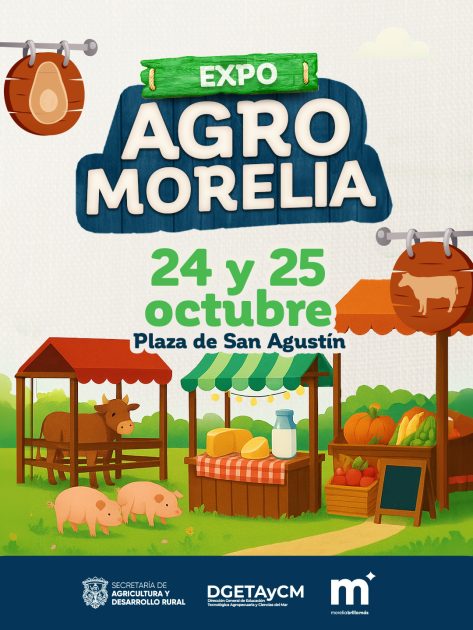 Morelia, Michoacán; 16 de octubre de 2025.- La Secretaría de Agricultura y Desarrollo Rural (SADERM), en colaboración con la Dirección General de Educación Tecnológica Agropecuaria y Ciencias del Mar (DGETAyCM), invita a la Expo Agro Morelia, que se llevará a cabo los días 24 y 25 de octubre de 2025, a partir de las 11:00 horas en la Plaza de San Agustín.