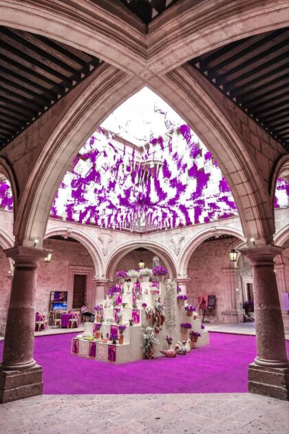 Ubicado en pleno centro de Morelia y decorado especialmente para esta fecha, el Palacio Municipal contará con los talleres de Pintado de artesanías de Capula, Decoración de velas y Decoración de galletas, los dos primeros a partir de las 11:00 horas, en tanto que el segundo arranca a las 13:00 horas.