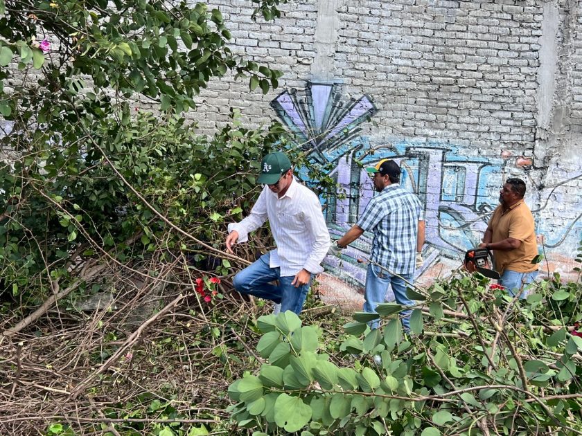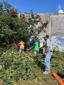 La Secretaría de Servicios Públicos realizó está actividad, con la participación coordinada de las Direcciones de Alumbrado Público, Residuos Sólidos, Parques y Jardines, y el Sector Revolución; además de habitantes de ambas colonias, quienes sumaron esfuerzos para limpiar áreas comunes y liberar el paso peatonal.