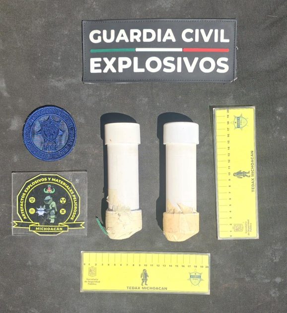 Los dispositivos, con características para ser empleados como granadas de mano, fueron elaborados con tubos de PVC, con carga aproximada de 301 gramos de pólvora y con una mecha pirotécnica de 20 centímetros.