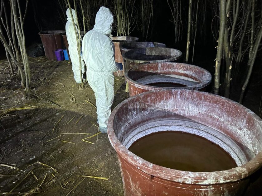Morelia, Mich., a 22 de febrero de 2026.- Las Comandancias de la XII Región Militar y 21/a. Zona Militar, hacen del conocimiento a la opinión pública que en el marco del “Plan Michoacán por la Paz y la Justicia” y la implementación del plan de Operaciones “Paricutín”, el 20 de febrero del presente año, integrantes de la Guardia Nacional en coordinación con personal del Ejército Mexicano durante patrullajes de vigilancia y reconocimientos en el municipio de Nocupétaro, Mich., localizaron e inhabilitaron un laboratorio clandestino empleado para la elaboración de drogas sintéticas, donde aseguraron lo siguiente: