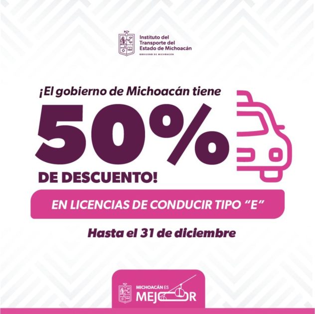 Morelia, Michoacán, 145de noviembre de 2025.- El Instituto del Transporte de Michoacán (ITransporte) anunció un descuento del 50 por ciento en las licencias de conducir del servicio público. Esta medida, vigente durante lo que resta del año, busca facilitar y agilizar los procesos de regularización para los transportistas del estado.