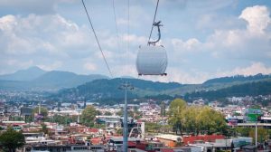 Uruapan, Michoacán, 25 de octubre de 2025.- La secretaria de Desarrollo Urbano y Movilidad, Gladyz Butanda Macías, informó que dio inicio el traslado de cabinas del teleférico de Uruapan, una vez que la instalación del tendido de cable se completó en un 100 por ciento.