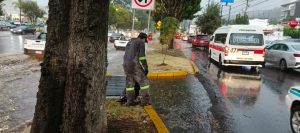 Personal de la Secretaría de Servicios Públicos, Protección Civil y Bomberos y oficiales de la Policía Morelia, se desplazaron a zonas prioritarias, para atender las solicitudes de apoyo y liberar las vialidades obstruidas por el agua.