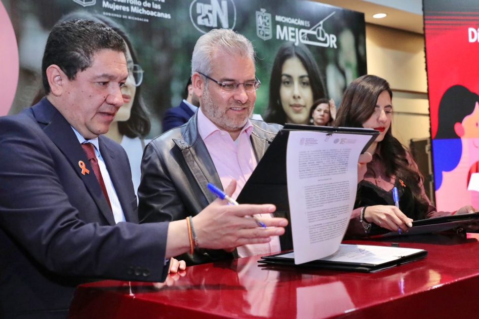Morelia, Michoacán, 25 de noviembre de 2025.- Michoacán avanza hacia la consolidación de centros de trabajo donde puedan desempeñarse las actividades diarias sin miedo, sin condicionamiento y sin violencia hacia las mujeres, destacó el gobernador Alfredo Ramírez Bedolla.