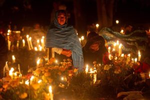 Miles de familias de comunidades indígenas adornan las tumbas de sus difuntos. Las visten con aromáticas flores de cempasúchil, o esparcen sus pétalos sobre las lápidas, encienden velas para facilitar el retorno de las almas a la tierra, y sirven la comida y las bebidas favoritas de los difuntos para alimentarlos después del camino recorrido.