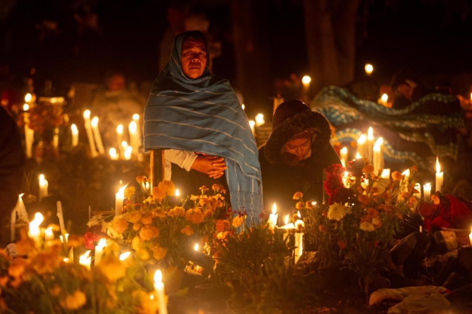 Miles de familias de comunidades indígenas adornan las tumbas de sus difuntos. Las visten con aromáticas flores de cempasúchil, o esparcen sus pétalos sobre las lápidas, encienden velas para facilitar el retorno de las almas a la tierra, y sirven la comida y las bebidas favoritas de los difuntos para alimentarlos después del camino recorrido.