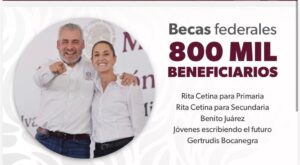 Para el nivel superior, precisó que existen dos vertientes de apoyo: Jóvenes Escribiendo el Futuro y la Beca Gertrudis Bocanegra. La primera beneficia a 15 mil estudiantes con 5 mil 800 pesos bimestrales; mientras que la segunda, enfocada en el apoyo para transporte, otorgará mil 900 pesos bimestrales a 51 mil alumnas y alumnos.