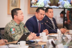 Además, la delegación diplomática conoció los avances en materia de seguridad y gobernabilidad expuestos por Raúl Zepeda Villaseñor, secretario de Gobierno; José Antonio Cruz Medina, secretario de Seguridad Pública; Carlos Torres Piña, fiscal general del Estado, y Juan Bravo Velázquez, comandante de la 21ª Zona Militar de la Defensa.