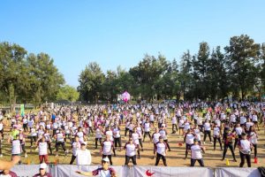 Bajo las indicaciones de la instructora Cielo Moreno, más de 800 personas realizaron una rutina de ejercicio sobre la explanada de la Unidad Deportiva Morelos Indeco, para mejorar la capacidad motriz y la coordinación de movimientos.
