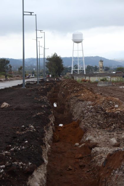 Morelia, Michoacán; 10 de octubre de 2025.- El Organismo Operador, de Agua Potable, Alcantarillado y Saneamiento de Morelia (Ooapas), continúa con los trabajos de construcción de una línea de conducción de mil 423 metros, sobre la prolongación de la avenida Amalia Solórzano.