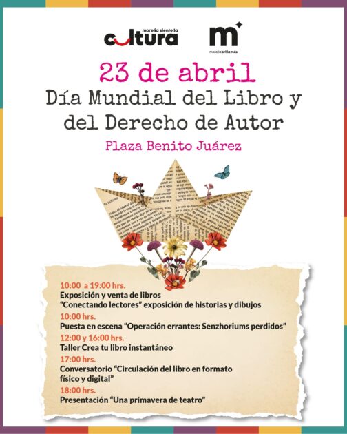 Morelia, Michoacán; 20 de abril de 2026.- La Secretaría de Cultura de Morelia (SeCultura) invita a toda la ciudadanía a participar en la gran jornada que se llevará a cabo el próximo 23 de abril en la Plaza Benito Juárez, para conmemorar el Día Internacional del Libro y de los Derechos de Autor.