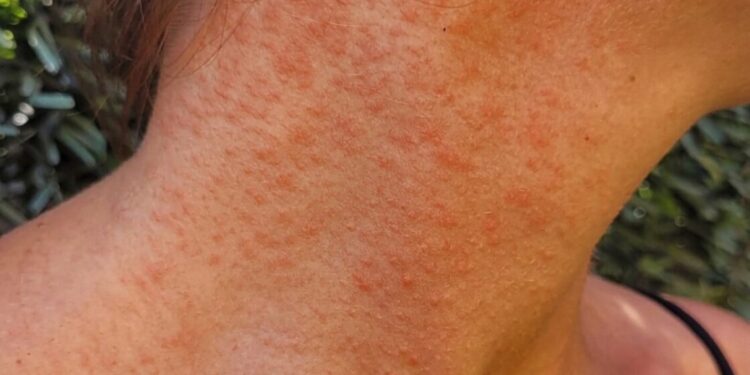Este padecimiento ocurre cuando el cuerpo no puede procesar adecuadamente la cantidad de calor ambiental a pesar de la sudoración, esto provoca la obstrucción de los poros, generando síntomas como picor intenso, enrojecimiento de la piel, hinchazón, manchas rojas y, en algunos casos, la aparición de ampollas.