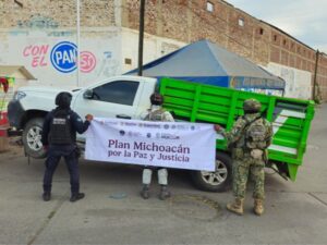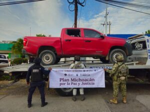 Buenavista, Michoacán, 15 de enero del 2026.- Derivado de las labores del Plan Michoacán por la Paz y la Justicia, elementos de las secretarías de Seguridad Pública (SSP) y de la Defensa Nacional (Defensa) aseguraron tres vehículos con reporte de robo, uno tiene blindaje improvisado, en el municipio de Buenavista.