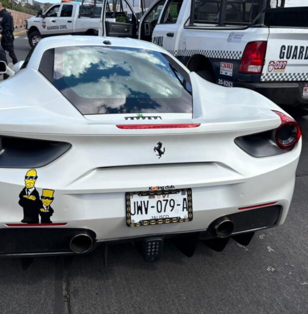 Los hechos se registraron alrededor de las 15:15 horas, cuando personal operativo marcó el alto a un vehículo que circulaba a exceso de velocidad. Al efectuar la inspección correspondiente, se aseguró un automóvil Ferrari 488 GTB, con placas del Estado de México.