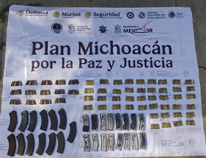 Buenavista, Michoacán, 13 de diciembre de 2025.- Como parte de las acciones operativas del Plan Michoacán por la Paz y la Justicia, agentes de las secretarías de Seguridad Pública (SSP) y de la Defensa Nacional (Defensa), destruyeron un campamento ilícito y aseguraron 560 cartuchos útiles, cargadores, equipo táctico y tres vehículos, dos con reporte de robo.