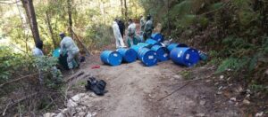 Madero, Michoacán, 27 de enero de 2026.- Como parte de las acciones del Plan Paricutín, elementos de las secretarías de Seguridad Pública (SSP) y de la Defensa Nacional (Defensa) localizaron y destruyeron un laboratorio clandestino para la elaboración de drogas, ubicado en el municipio de Madero.