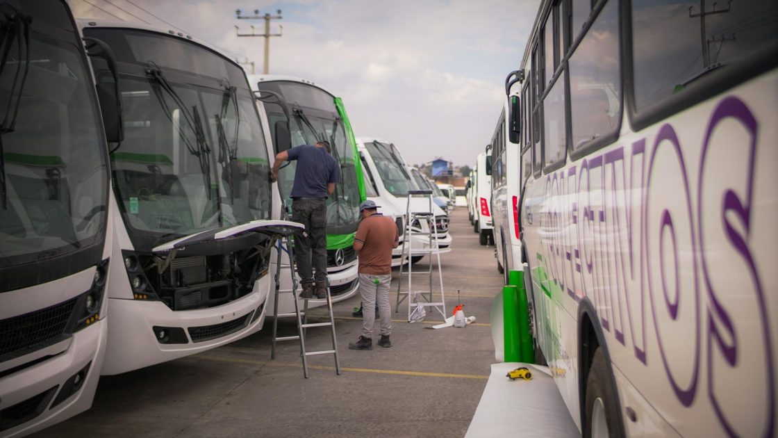 Uruapan, Michoacán, 2 de diciembre de 2025.- La secretaria de Desarrollo Urbano y Movilidad, Gladyz Butanda Macías, supervisó el equipamiento de los autobuses con que se renovará el transporte público en Uruapan.